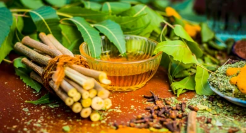 - Neem (Azadirachta indica): Known as the “village pharmacy,” neem has powerful antibacterial, antiviral, and blood-purifying properties. It is traditionally used to support skin health and cleanse the blood.